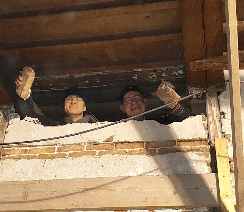 allard architecture, as well as Henri Willig and the construction team gathered on the building site to celebrate an important event: the demolition of the first bricks of this 500-year-old wall. The bricks will be preserved and reused in the museum as a souvenir.