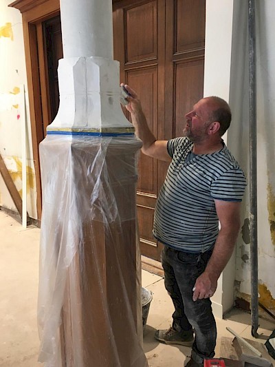Today we received the Restauration Research expert Josefien & Co report: "An exploratory color study of the original interior finish"; an Allard Architecture commisioned color study into Compagnie Theater's columns, window and frame wood and large cornice in the interior of the former Restored…