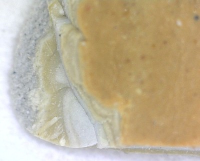 Paint sample CTA-M01, (upper half) entablature under vault, viewed from below.