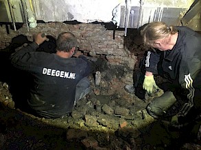 This intriguing snapshot portrays a significant moment in the construction process at the Bloemgrachtkerk. The focus of the image lies on the meticulous task of placing a concrete floor, the foundation of the Bloemgrachtkerk.