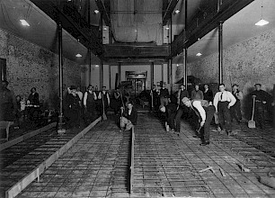 The photograph not only captures the physical labor involved in the construction, but it also provides us with a glimpse into the atmosphere of the bustling construction site. It transports us back in time, immersing us in an era where craftsmanship and dedication were paramount in creating enduring architectural wonders.