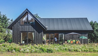 While maintaining its strong historical and environmental context, this Indonesian-inspired vacation home aims to balance bold yet subtle material and design choices. The house itself is clad in Swedish rabat wood, and topped with a thatched roof, both traditional and economical choices. While the thatched roof relates back to traditional aesthetics, the flush windows and extensive glazing provides a modern twist.