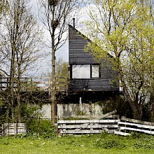 The Stichtse Vecht summer house is located in the countryside of central Holland, in an area called Loosdrecht. It is considered as a kultuur landschap, or cultural landscape, that is shaped by man-made lakes and bogs. The house takes advantage of its surroundings by providing viewpoints that maintain strong visual axes.